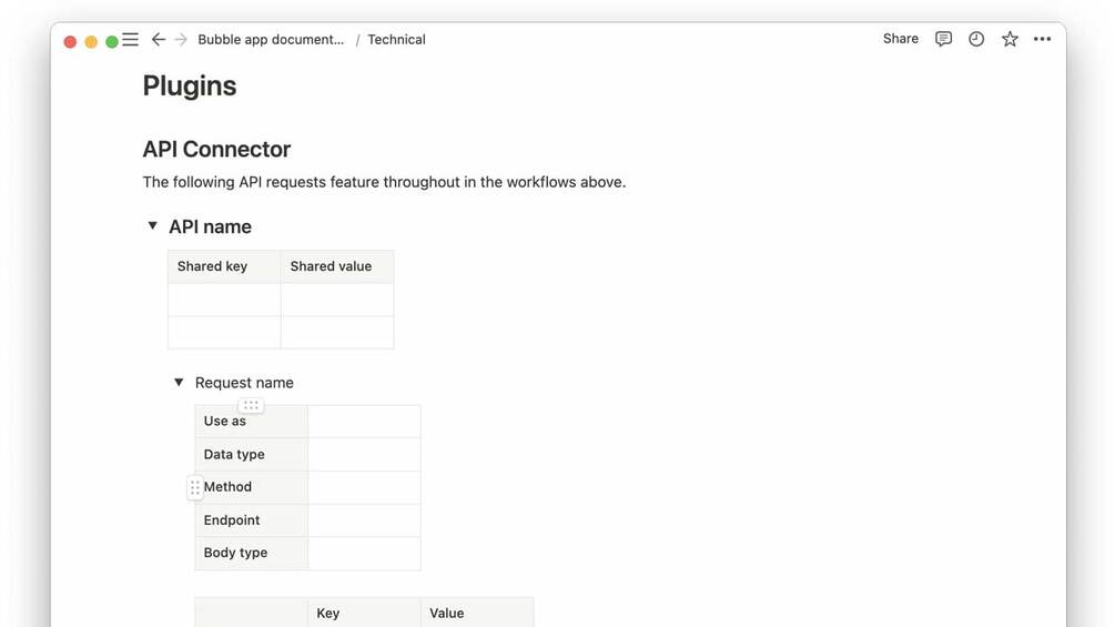 Document your bubble.io built applications with this structured notion.io template.
