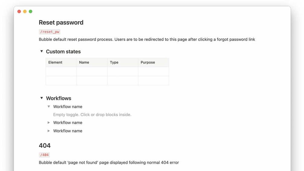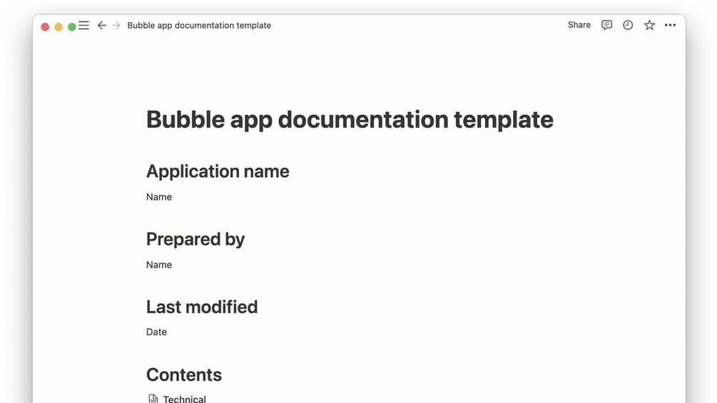 Document your bubble.io built applications with this structured notion.io template.